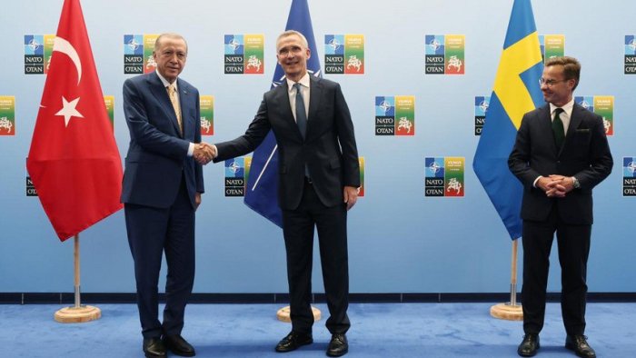 Litvada səfərdə olan Türkiyə Prezidenti Rəcəb Tayyib Ərdoğanla NATO Baş katibi Yens Stoltenberq və İsveç Baş naziri Ulf Kristersson arasında üçtərəfli görüş olub.