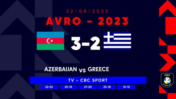 Bizim.Media xəbər verir ki, komandamız bu gün Yunanıstanla qarşılaşıb. Gərgin keçən bu matçda voleybolçularımız 3:2 hesabi ilə qələbə qazanıblar.