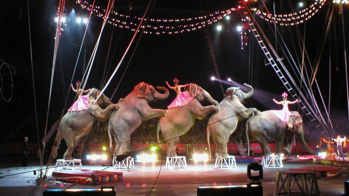 Rusiyanın Kazan şəhər sirkində fillər dalaşıb.