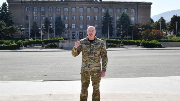 Azərbaycan Respublikasının Prezidenti İlham Əliyev oktyabrın 15-də Xankəndi şəhərində Azərbaycan Respublikasının Dövlət Bayrağını ucaldıb və çıxış edib.