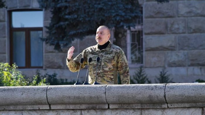 Azərbaycan Prezidenti, Silahlı Qüvvələrin Ali Baş Komandanı İlham Əliyev noyabrın 8-də Xankəndi şəhərində keçirilən paradda çıxış edib.