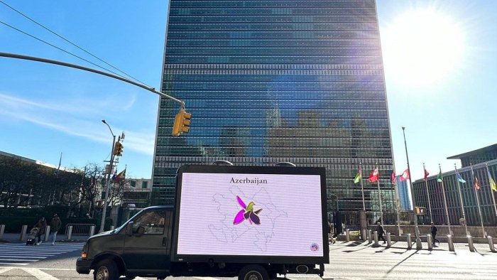 ABŞ-ın Nyu-York şəhərində BMT-nin mənzil-qərargahının qarşısında bilbordda 8 Noyabr - Azərbaycanın Zəfər Gününə həsr olunmuş lövhələr nümayiş etdirilib.