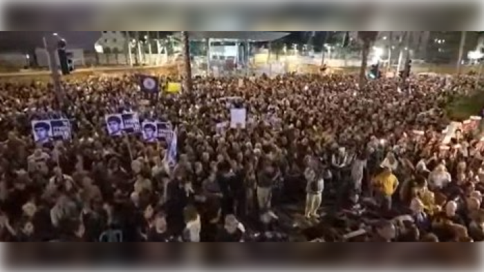 Təl-Əviv şəhərində əhali oktyabrın 7-də HƏMAS tərəfindən əsir götürülən insanların azad edilməsi tələbi ilə “Girov Meydanı”na toplaşıb.