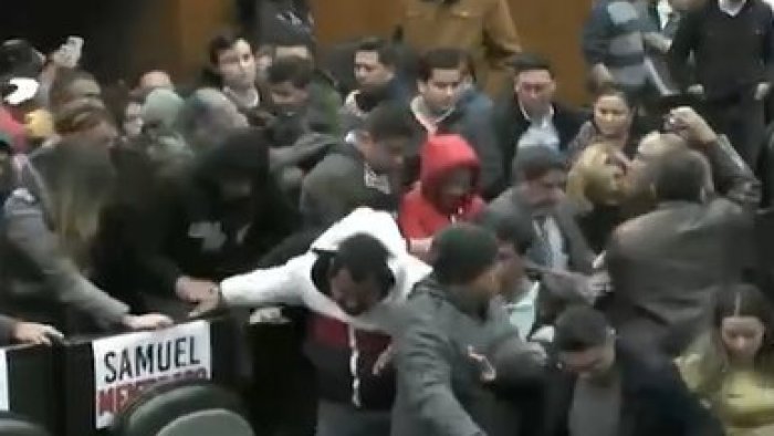 Bizim.Media xəbər verir ki, iclası pozmağa çalışan hakim partiyanın tərəfdarları parlament zalına basqın ediblər.