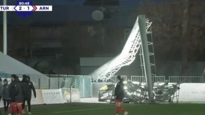 Bizim.Media xəbər verir ki, matçın 81-ci dəqiqəsində güclü küləyin təsirindənTovuz şəhər stadionunda işıq dirəyinin biri aşıb.