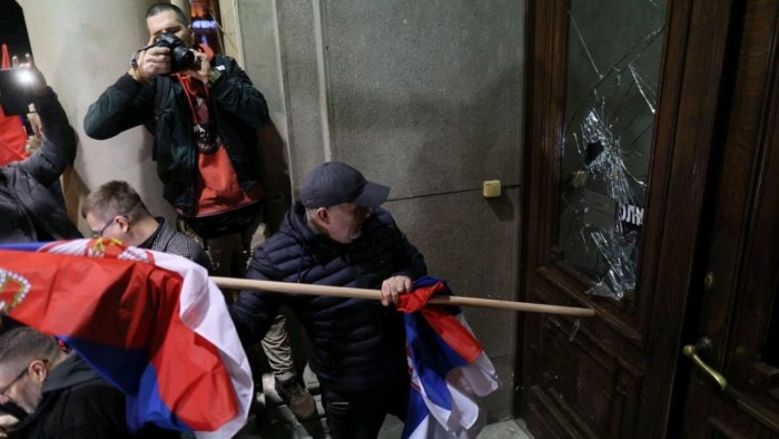 Etirazçılar Belqrad administrasiyasının binasının pilləkənlərinə çıxıb və qapıları sındırıblar.