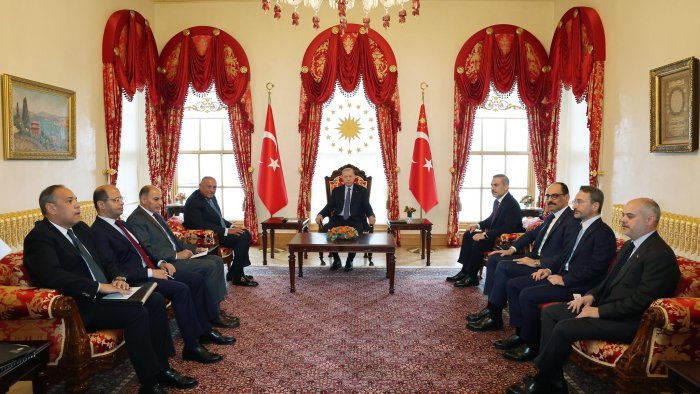 Türkiyə Prezidenti Rəcəb Tayyib Ərdoğan İstanbulda Misirin xarici işlər naziri Samih Şükrünü qəbul edib.