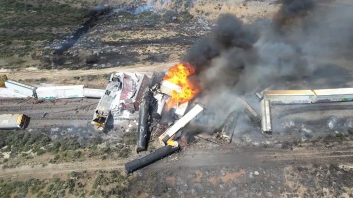 ABŞ-ın Arizona və Nyu Meksiko ştatlarının sərhədi yaxınlığında yük qatarı relsdən çıxaraq alovlanıb.