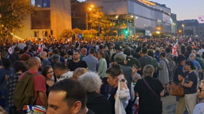 Bizim.Media apa.az-a istinadən xəbər verir ki, paytaxtın Respublika meydanına toplanmış minlərlə Gürcüstan vətəndaşı ərazidə avtomobillərin hərəkətini məhdudlaşdırıb.