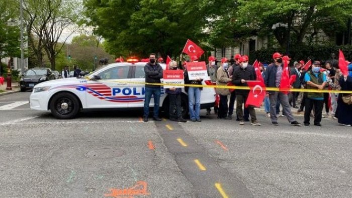 Vaşinqtonun erməni icması üzvlərinin və erməni lobbiçilərinin təqribən 50 təmsilçisi Türkiyənin diplomatik nümayəndəliyi qarşısında toplanıb.