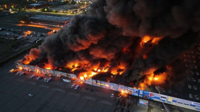 Polşanın paytaxtı Varşavanın şimalındakı ticarət mərkəzində yanğın baş verib.