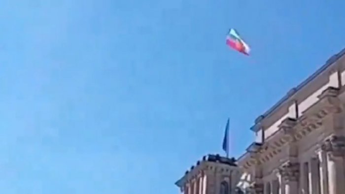 Ukraynadan olan qaçqın Berlindəki Reyxstaqın üzərinə Rusiya bayrağı bağlanmış dron buraxıb.
