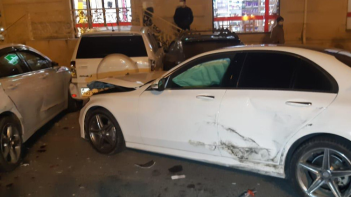 Zərbənin gücündən “Mercedes” daha sonra yol kənarında hərəkətsiz dayanmış 2 “Hyundai” markalı, eyni zamanda “Ford” və “Mitsubishi” markalı minik avtomobillərinə çırpılıb.