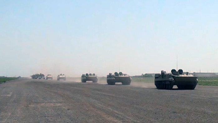 Müxtəlif qoşun növlərinin cəlb edilməsi ilə keçirilən təlimlər davam edir.