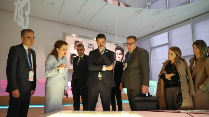 Bizim.Media xəbər verir ki, ali qonağa dünya memarlığının nadir incilərindən sayılan Heydər Əliyev Mərkəzi haqqında geniş məlumat verilib.