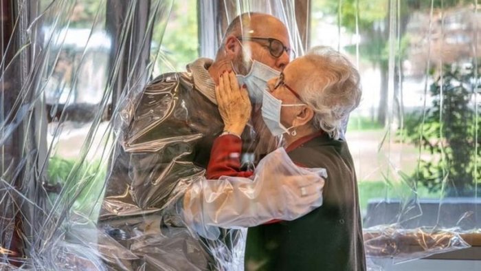 Qocaların ziyarətə gələn yaxınları ilə qucaqlaşa bilməsi üçün “qucaqlaşma otağı” hazırlanıb.