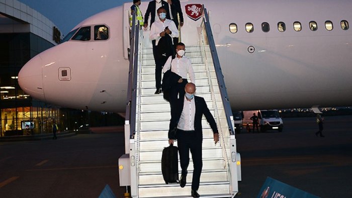 Çexiya millisi futbol üzrə Avropa çempionatının 1/4 final mərhələsində Danimarkaya qarşı keçirəcəkləri oyun üçün Bakıya yola düşüb.
