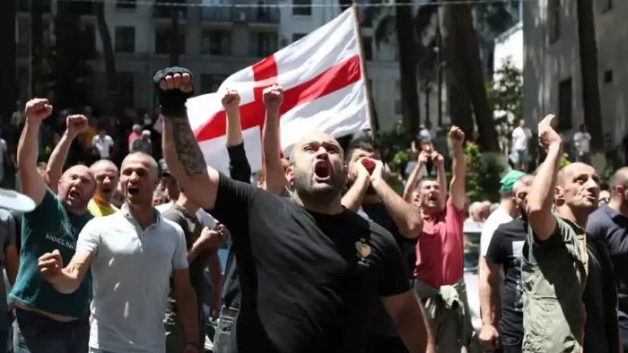 Bizim.Media 24News.ge xəbər verir ki, etirazda minlərlə insan iştirak edir.