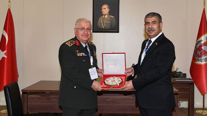 “IDEF - 2021” Beynəlxalq Müdafiə Sərgisində iştirak etmək məqsədilə İstanbul şəhərində səfərdə olan Azərbaycan Respublikasının Müdafiə naziri general-polkovnik Zakir Həsənov Türkiyə Respublikasının Baş Qərargah rəisi ordu generalı Yaşar Gülerlə görüşüb.