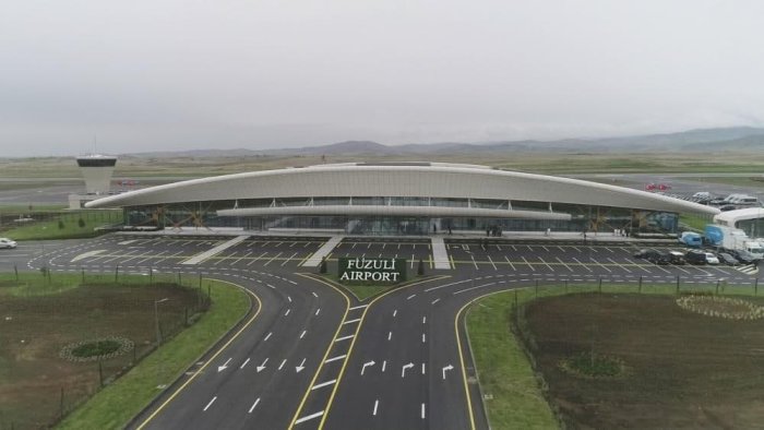 “Türkiyə Prezidenti Rəcəb Tayyib Ərdoğan və Azərbaycan Prezidenti İlham Əliyev Qarabağın dünyaya açılan qapısı Füzuli Beynəlxalq Hava Limanının açılışını etdilər”.