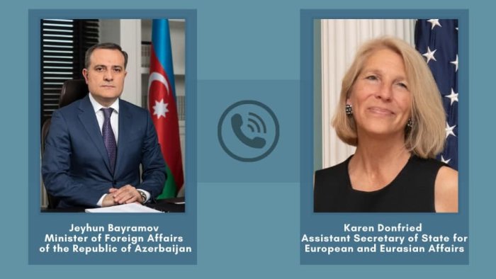 Bu gün xarici işlər naziri Ceyhun Bayramovun ABŞ dövlət katibinin Avropa və Avrasiya məsələləri üzrə köməkçisi Karen Donfrid ilə telefon danışığı baş tutub.