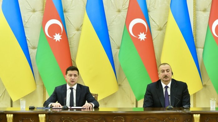 Yanvarın 14-də Ukraynada işgüzar səfərdə olan Azərbaycan Respublikasının Prezidenti İlham Əliyev və Ukrayna Prezidenti Vladimir Zelenski sənədlərin imzalanması mərasimindən sonra mətbuata bəyanatlarla çıxış ediblər.