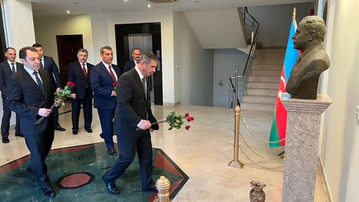 Ziyarət zamanı səfirliyin inzibati binasında ucaldılmış ümummilli lider Heydər Əliyevin büstü önünə gül dəstələri qoyulub, xatirəsi ehtiramla anılıb.
