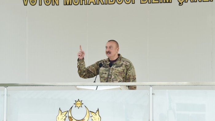 Biz bu mifi də dağıtdıq və göstərdik ki, güclü iradə olan yerdə, xalq-iqtidar birliyi olan yerdə, hərbçilərin vətənpərvərliyi olan yerdə heç kim bizim qabağımızda dura bilməz. Əgər yenə də Ermənistanda revanşist qüvvələr baş qaldırsa, bilməlidirlər ki, onları nələr gözləyir”, - Prezident İlham Əliyev qeyd edib.