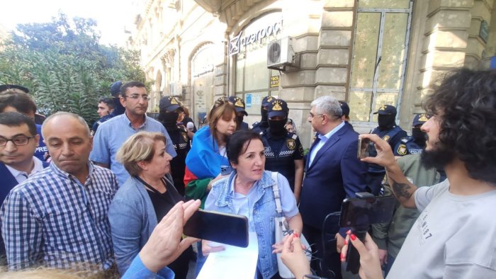 Aksiya iştirakçıları səfirlik qarşısında öz bəyanatlarını səsləndiriblər. Bəyanat səfirlik əməkdaşına təqdim olunub.
