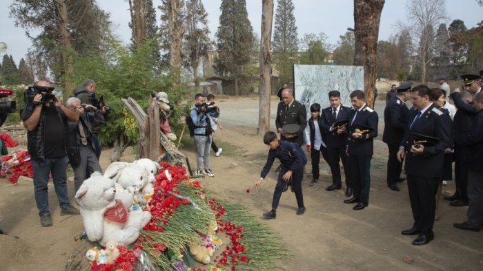 Daha sonra Gəncə Memorial Kompleksini ziyarət edən tədbir iştirakçıları həlak olan dinc sakinlərin xatirə guşəsinin önünə güllər düzərək, ehtiramlarını bildiriblər.