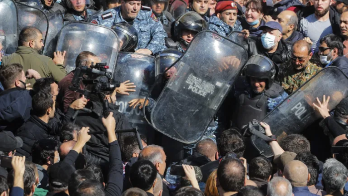 Ermənistan parlamentinin qarşısında etirazlar başladı - Qumbara və snayperlər gətirildi