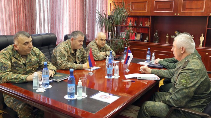 Azərbaycanın Qarabağ bölgəsindəki Rusiya sülhməramlı hərbçilərin komandanı, general-leytenant Rüstəm Muradovun Ermənistan Silahlı Qüvvələri Baş Qərargahının rəisi, general-leytenant Artak Davtyanla İrəvanda görüşü zamanı Rusiya Federasiyasının dövlət bayrağı tərsinə asılıb.