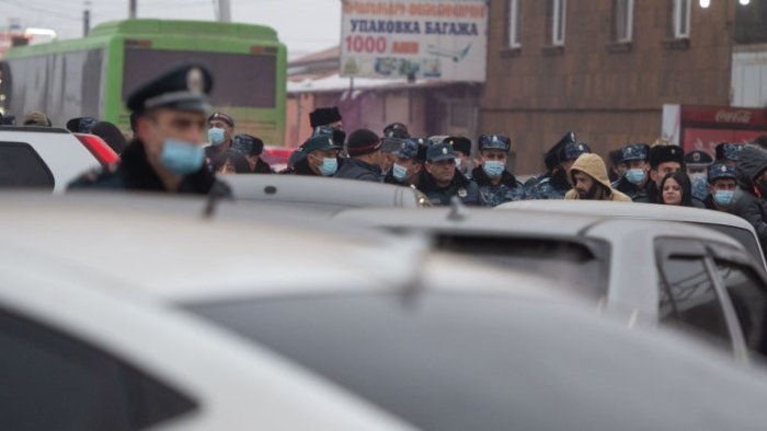 Vaqarşapat polis idarəsinin rəisi Rafael Poqosyan və yol polisinin taqım komandiri M. Sarkisyan etirazçılar ilə danışıqlara başlayıblar.