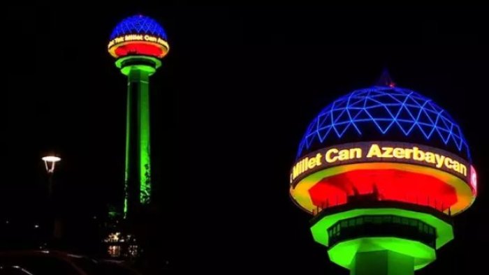 Türkiyənin paytaxtı Ankaranın rəmzi sayılan Atakule qülləsi Azərbaycanın dövlət bayrağının rəngləri ilə işıqlandırılıb.