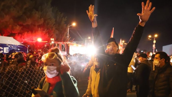 Bizim.Media gürcü mətbuatına istinadən xəbər verir ki, polisin su şırnaqları və bibər qazından istifadə edərək MSK-ya gedən yolu bağlayan etirazçıları dağıdıb.