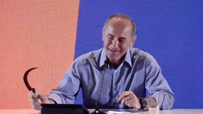 “Hayastan” blokunun təşviqat apardığı Göçə mahalının Basarkeçər rayonunun (indiki Vardenis) seçiciləri baş nazir kreslosuna namizəd olan Robert Köçəryana bir oraq hədiyyə ediblər.