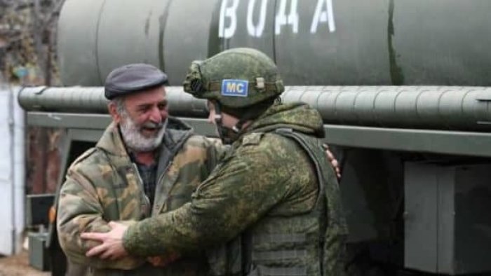 Həyətdə heç vaxt su daşıyan maşın (vodovoz) olmayıb. Siz gəldiniz və bizə su gətirdiniz. Təşəkkür edirəm. Nəhayət, bir az su götürə bildik. İstəyirəm ki, burada uzun müddət qalasınız”. Xankəndidə yaşayan Tigran Abramyan rus əsgərinə yalvarıb.