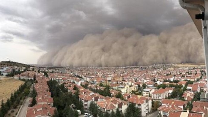 Bizim.Media türk mediasına istinadən xəbər verir ki, Muğlanın Bodrum mahalında hava qəfildən qaralıb, toz-duman qopub, sonra yağan yağış palçıq şəklində yerə düşüb.