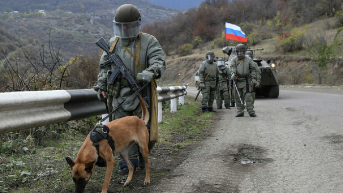 Rusiya sülhməramlı kontingentinin hərbi qulluqçuları nəqliyyat vasitələrinin təhlükəsizliyini və vətəndaşların Dağlıq Qarabağdakı Laçın dəhlizi boyunca hərəkətini təmin edirlər.