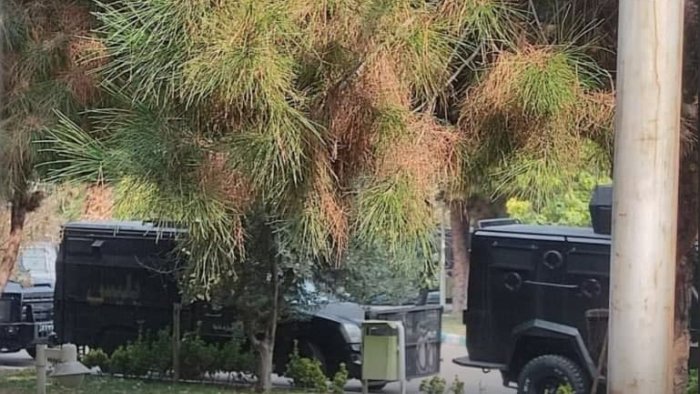 Xüsusi polis dəstələri İran Dövlət Teleradio Şirkətinin həyətində yerləşdirilib.