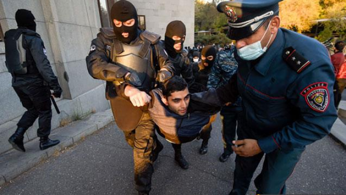 Ermənistanın paytaxtı İrəvanda etiraz aksiyalarında tutulanların sayı 42-yə çatıb.