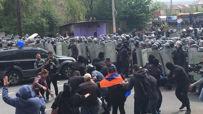 Məlumata görə, etirazçılar “Nikolsuz Ermənistan” şüarları səsləndirirlər. Bildirilir ki, nümayişçilərin Hökümət Evinə hücumu ola bilər.