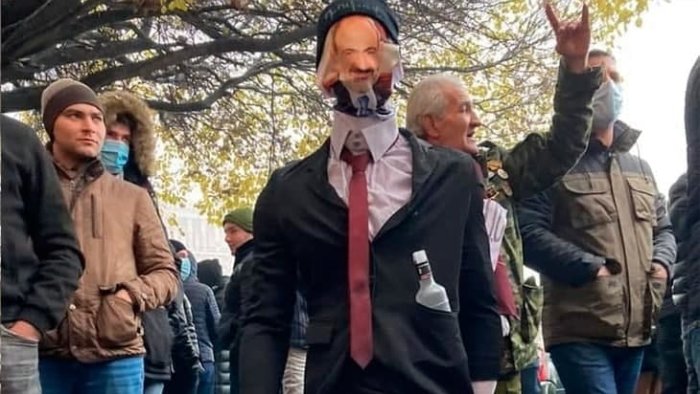 Ermənistanda etiraz aksiyası keçirənlər Hökumət binasının qarşısına baş nazir Nikol Paşinyanın müqəvvasını gətiriblər.