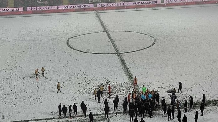 Bizim.Media "TRT Sport"a istinadən xəbər verir ki, görüşün baş hakimi fasilədən sonra komandaların güclü qar səbəbindən meydana çıxmasına icazə verməyib.