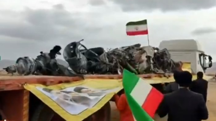 Kadrlarda texnikanın tamamilə yanmış və deformasiyaya uğramış vəziyyətdə olduğu görünür. İran mediası bunu ABŞ-a məxsus hərbi texnika kimi təqdim edir.