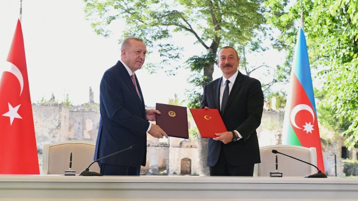 "Şuşa Bəyannaməsi ilə müttəfiqlik zirvəsinə ucalmış əlaqələrimizin həyatın bütün sahələrində, istər siyasət, iqtisadiyyat, enerji, nəqliyyat, mədəniyyət, təhsil, hərbi və digər sahələrdə özünü göstərməsi bizi çox sevindirir".