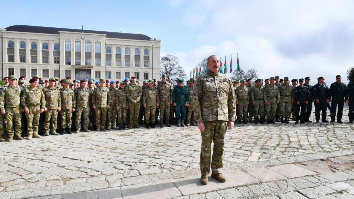 Bizim.Media xəbər verir ki, dövlət başçısı hərbçilər qarşısında çıxış edib.