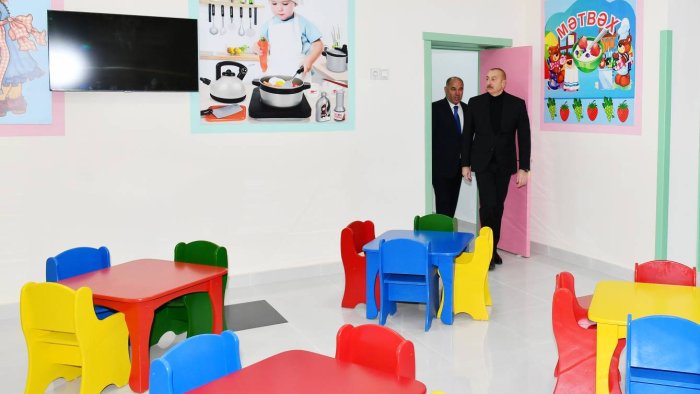 Prezident İlham Əliyev qrup otaqları, oyun zalı, yeməkxana və həyətyanı sahədə yaradılmış şəraitlə tanış oldu.
