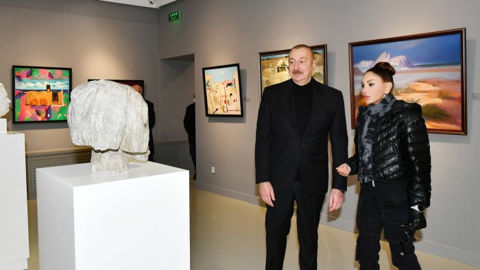 Prezident İlham Əliyev, birinci xanım Mehriban Əliyeva və Leyla Əlieva Rəsm Qalereyasında görülmüş bərpa işləri ilə tanış olublar.
