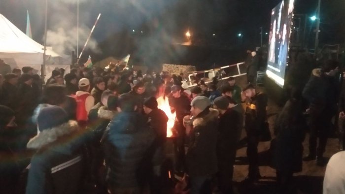 Bir tərəfdən şuarlar səsləndirilir, digər tərəfdə isə gənclər ocaq başında vətənpərvərlik mahnıları səsləndirib rəqs edirlər.